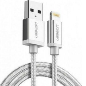 UGREEN – CABLE DE DATOS Y CARGA USB-A A LIGHTNING 24A COLOR BLANCO PLATEADO 1 METRO